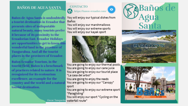 You will enjoy our typical dishes from Baños You will enjoy our marshmallows You will enjoy our extreme sports You will enjoy our kayak sport