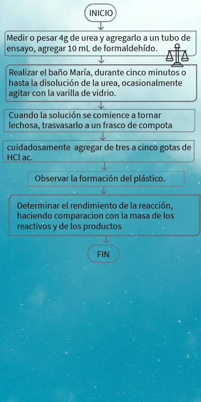Medir o pesar 4g de urea y agregarlo a un tubo de ensayo, agregar 10 mL de formaldehído.