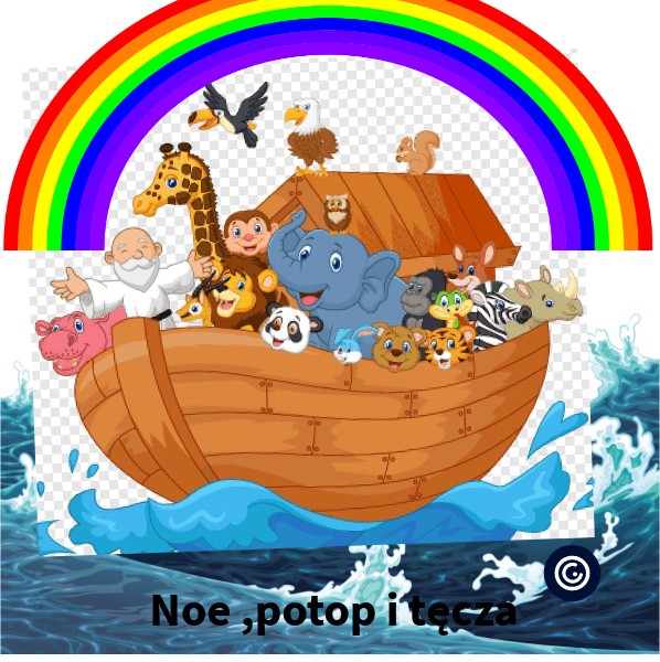 Katecheza Temat : Noe, potop i tęcza. Wody potopu symbolizują chrzest, w którym Bóg obmył nasze dusze z grzechu pierworodnego i zawarł z każdym z nas przymierze. Obiecał opiekować się nami i bronić od zła pod warunkiem, że będziemy korzystać z pomocy, którą nam daje w Kościele przez sakramenty.
