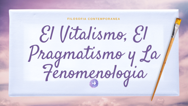El Vitalismo, El Pragmatismo y La Fenomenologia