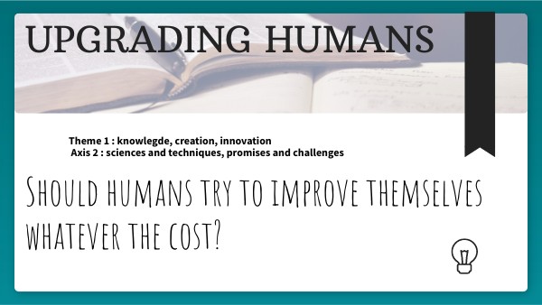 1. Present the document and give a definition of transhumanism. 2. What are the improvements transhumanists wish for? 3. 'The future belongs to artificial intelligence'. Why? 4. What are the risks? Give your opinion on transhumanism.