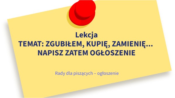 Lekcja TEMAT: ZGUBIŁEM, KUPIĘ, ZAMIENIĘ... NAPISZ ZATEM OGŁOSZENIE