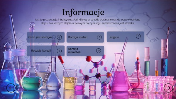 Iest to prezentacja intraktywna. Jesl klikney w strzałki ptzenesie nas do odpowiedniego slajdu, Na każdym slajdie w prawym dolnym rogu zamieszczona jest strzałka.