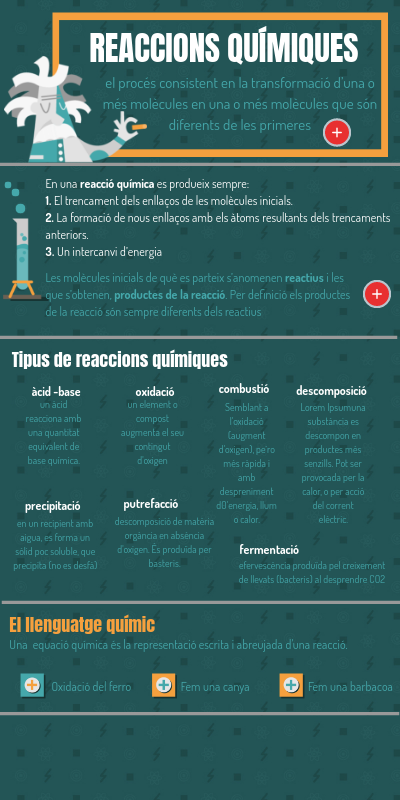 Les molècules inicials de què es parteix s’anomenen reactius i les que s’obtenen, productes de la reacció. Per definició els productes de la reacció són sempre diferents dels reactius