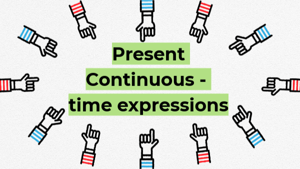 * czynności wykonywane w tej chwili: NOW - terazAT THE MOMENT - w tym momencie JUST - właśnie *czynności zaplanowane na najbliższą przyszłość: TOMORROW - jutro TONIGHT - dziś wieczorem THIS WEEKEND/WEEK/MONTH - w ten weekend/tydzień/miesiąc *irytujące czynności które się powtarzają: ALWAYS - zawsze CONSTANTLY - stale