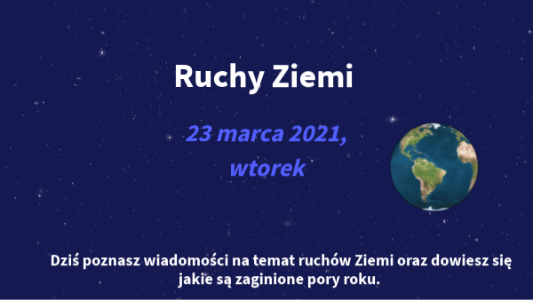 Dziś poznasz wiadomości na temat ruchów Ziemi oraz dowiesz się jakie są zaginione pory roku.