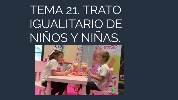 Jueves 17 de Marzo de 2022. "No te desesperes" Tema 21. Trato igualitario de niños y niñas Un trato igualitario significa permitir a niños, niñas y adolescentes adquirir conocimientos y habilidades, desarrollar competencias, innovar y tener autoconfianza. Adicionalmente, los posiciona como agentes de cambio a la hora de avanzar hacia la igualdad de género, a través de capacidades como el compromiso, el respeto y la tolerancia.