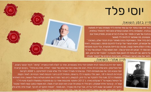 כאשר יוסי היה בן 6 נמסר לבית יתומים יהודי גדול באנטוורפן. אחר כך לעלה לארץ באונייה "קדמה" לכפר הנוער ניצנים. " יואל איגלינסקי, איש שלא הכרתי בכלל, הציג את עצמו כאח של אמא שלי ואמר: ‘יאללה, אתה בא איתי!’". בקיבוץ קראו לו יוסף ובצבא הפך את שם משפחתו לפלד. עם שחרורו מצה”ל הצהיר פלד שלא יצטרף לפוליטיקה, ב־2008 לקראת הבחירות לכנסת ה־18, הוצב פלד במקום ה־15 ברשימה, והתחיל לכהן כחבר הכנסת לאחר הבחירות. לאחר הקמת הממשלה ה־32 מונה פלד לתפקיד שר בלי תיק. לבקשתו, כיהן כשר המרכז את תחום פעילות ניצולי השואה, והיה האחראי על הטיפול באנשי צד"ל שנקלטו בארץ. ב־2012 התפטר מהכנסת ואחר כך גם מתפקידו בממשלה לטובת מינויו ליו"ר קצא"א - קו צינור אילת־אשקלון. כיום פלד חי בצפון תל אביב הוא הקים חברה משלו. הוא אושפז במצב קשה לאחר שקיבל התקף לב “אומנם אני שונא לדבר על זה, אבל קרה מה שקרה”, הוא מספר. “חטפתי התקף לב לא קל. ישנתי איזה חודש ולא זוכר כלום מזה. מאז אני עושה בדיקות בכל חצי שנה, ולפי נתוני הרופאים אני בריא ושמח שכך”.