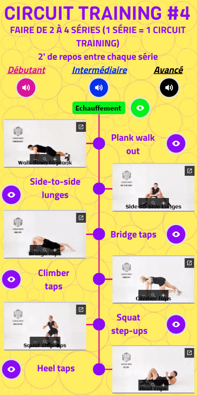 Faire de 2 à 4 séries (1 série = 1 circuit training)