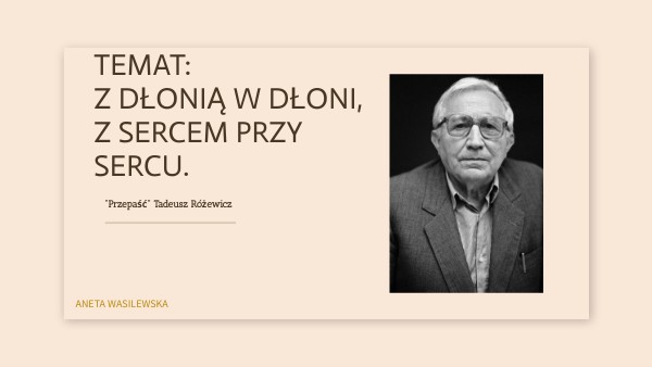 Temat:Z dłonią w dłoni, z sercem przy sercu.