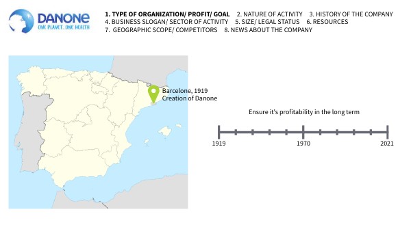 1. TYPE OF ORGANIZATION/ PROFIT/ GOAL 2. NATURE OF ACTIVITY 3. HISTORY OF THE COMPANY 4. BUSINESS SLOGAN/ SECTOR OF ACTIVITY 5. SIZE/ LEGAL STATUS 6. RESOURCES 7. GEOGRAPHIC SCOPE/ COMPETITORS 8. NEWS ABOUT THE COMPANY