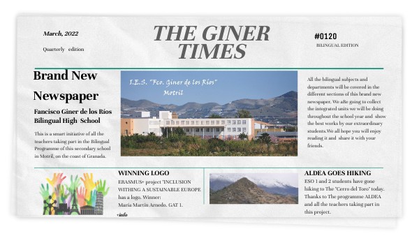 All the bilingual subjects and departments will be covered in the different sections of this brand new newspaper. We aRe going to collect the integrated units we will be doing throughout the school year and show the best works by our extraordinary students.We all hope you will enjoy reading it and share it with your friends.