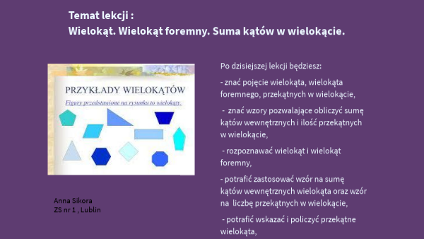 Wielokąt. Wielokąt foremny. Suma kątów ww ielokącie