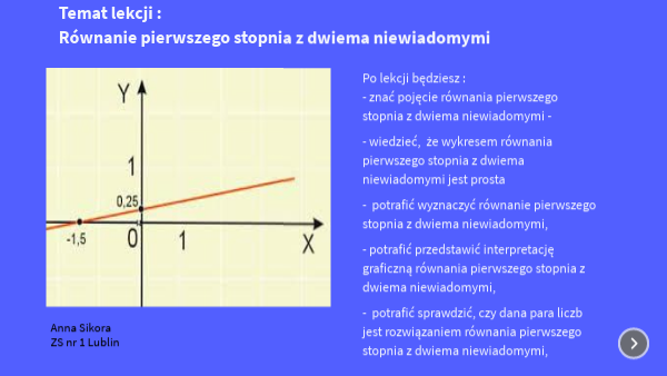 Po lekcji będziesz :- znać pojęcie równania pierwszego stopnia z dwiema niewiadomymi