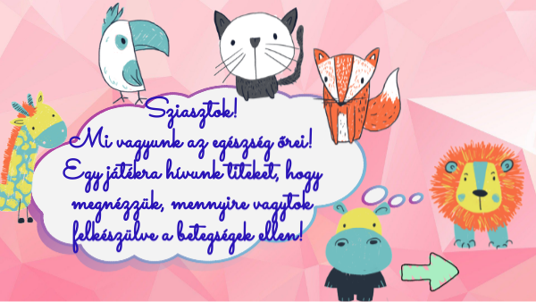 Sziasztok! Mi vagyunk az egészség őrei! Egy játékra hívunk titeket, hogy megnézzük, mennyire vagytok felkészülve a betegségek ellen!