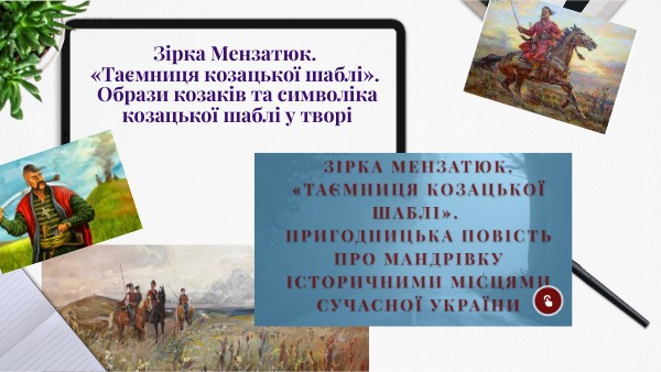 Зірка Мензатюк. «Таємниця козацької шаблі». Образи козаків та символіка козацької шаблі у творі