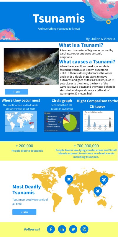 A tsunami is a series of big waves caused by earth quakes or undersea volcanic eruptions.