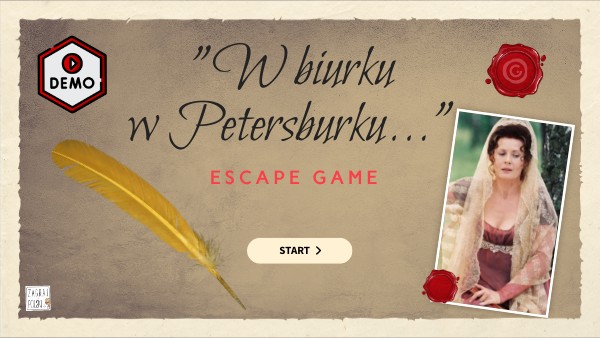 Szczęśliwy nabywco biurka z Petersburga! Czeka Cię niesamowita przygoda! Pakuj walizki, bilety już masz! Na miejscu poznasz historię wyjątkowej kobiety (pierwszej właścicielki tego mebla) i lata, które odmieniło jej życie na zawsze! Jeśli starczy Ci odwagi i determinacji... Zabierz ze sobą przedmioty, które właśnie znalazłeś, będą Ci potrzebne, aby dotrzeć do sedna tajemnicy i otworzyć szkatułkę. A więc ruszaj na poszukiwanie kluczyka! Nie wątpię, że Ci się uda! Powodzenia! xxx
