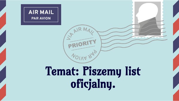 Cele lekcji: - zapoznasz się z tekstem listu oficjalnego - wskażesz najważniejsze jego cechy - przeprowadzisz analizę graficznego rozmieszczenia treści w liście