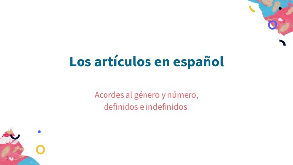 En español, existen dos tipos de artículos: los artículos indeterminados (un, una, unos, unas) y los artículos determinados (el/los, la/las, lo).