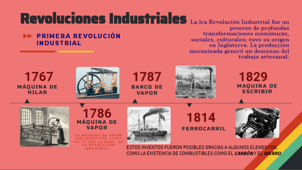 La 1ra Revolución Industrial fue un proceso de profundas transformaciones económicas, sociales, culturales; tuvo su origen en Inglaterra. La producción mecanizada generó un descenso del trabajo artesanal.