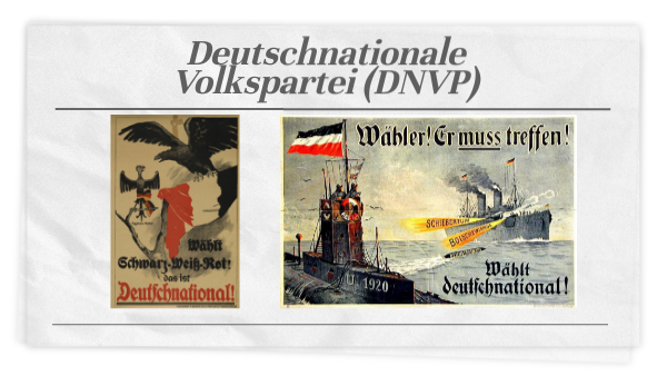 Die Deutschnationale Volkspartei (DNVP) war eine nationalkonservative Partei in der Weimarer Republik, deren Programmatik Nationalismus, Nationalliberalismus, Antisemitismus, kaiserlich-monarchistischen Konservatismus sowie völkische Elemente enthielt.