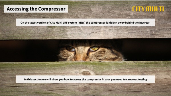 On the latest version of City Multi VRF system (YNW) the compressor is hidden away behind the Inverter