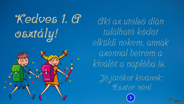 Aki az utolsó dián található kódot elküldi nekem, annak azonnal beírom a kiválót a naplóba is.