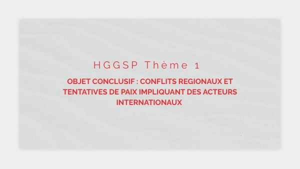 OBJET CONCLUSIF : CONFLITS REGIONAUX ET TENTATIVES DE PAIX IMPLIQUANT DES ACTEURS INTERNATIONAUX
