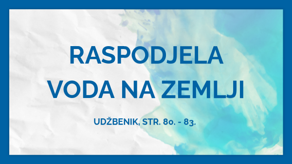 Sada zapišite naslov današnje lekcije - Raspodjela voda na Zemlji. Otvorite udžbenik na str. 80 - 83 i pročitajte lekciju. Pripremite drvene bojice.