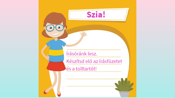 Írásóránk lesz. Készítsd elő az írásfüzetet és a tolltartót!