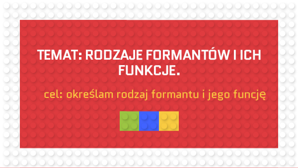 Wyróżniamy następujące formanty: - przedrostek - występuje przed tematem słowotwórczym, np. przebiegać - przyrostek - występuje po temacie słowotwórczym, np. kotek - wrostek - występuje w środku wyrazu (między dwoma tematami słowotwórczymi), np. wodoodporny - formant zerowy (O) - występuje w wyrazach pochodnych, w których odrzucono część wyrazu podstawowego, np. zbieg (od zbiegać)