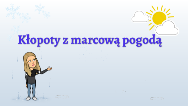 zad. 3 str. 37 W marcu pogoda jest zmienna i kapryśna. W ciągu jednego dnia może padać deszcz, śnieg i świecić słońce. Jednego dnia pogoda może być wiosenna, a następnego zimowa.