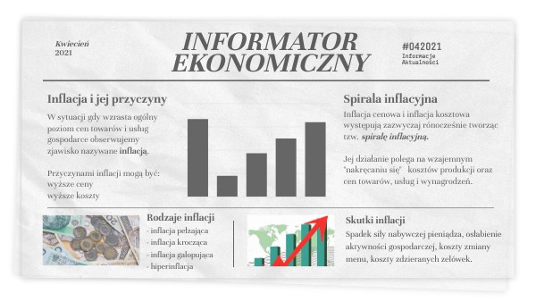 W sytuacji gdy wzrasta ogólny poziom cen towarów i usług gospodarce obserwujemy zjawisko nazywane inflacją. Przyczynami inflacji mogą być:wyższe ceny wyższe koszty
