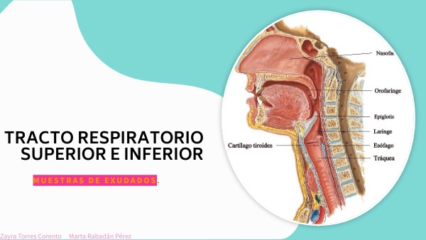 El sistema respiratorio superior, o tracto respiratorio superior, consiste en la nariz y la cavidad nasal, la faringe y la laringe. Estas estructuras nos permiten respirar y hablar. En esta parte del tracto respiratorio tomaremos muestras que nos permitirán realizar estudios microbiológicos e inmunológicos.
