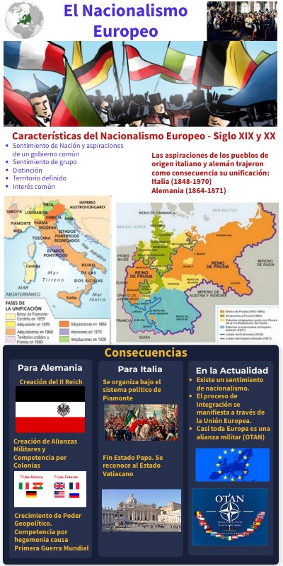 El sentimento de nacionaismo del Siglo XIX y XX condujeron a la unificación de Italia y Alemania