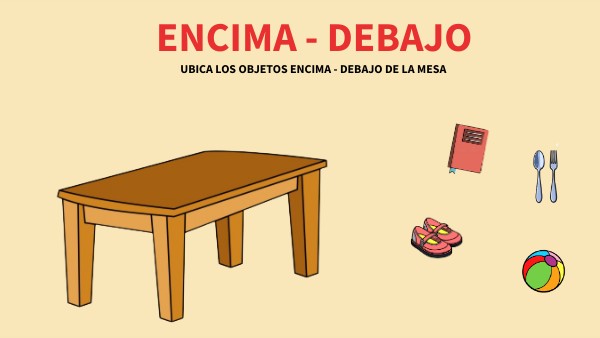 UBICA LOS OBJETOS ENCIMA - DEBAJO DE LA MESA