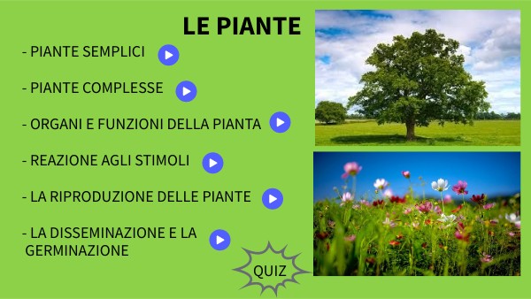 - PIANTE SEMPLICI - PIANTE COMPLESSE - ORGANI E FUNZIONI DELLA PIANTA - REAZIONE AGLI STIMOLI - LA RIPRODUZIONE DELLE PIANTE - LA DISSEMINAZIONE E LA GERMINAZIONE