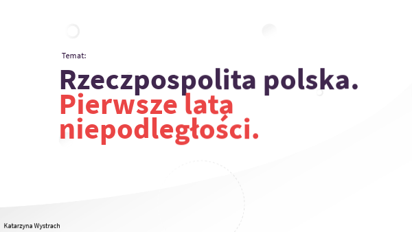 Rzeczpospolita polska. Pierwsze lata niepodległości.