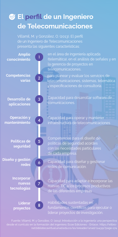 Villamil, M. y González, O. (2013). El perfil de un Ingeniero de Telecomunicaciones presenta las siguientes características: