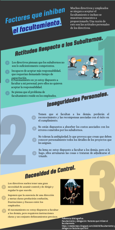Referencia Bibliografica. Facultamiento y delegación: Factores que inhiben el facultamiento. https://createonepw.blogspot.com/2018/03/facultamiento-y-delegacion-factores-que.html