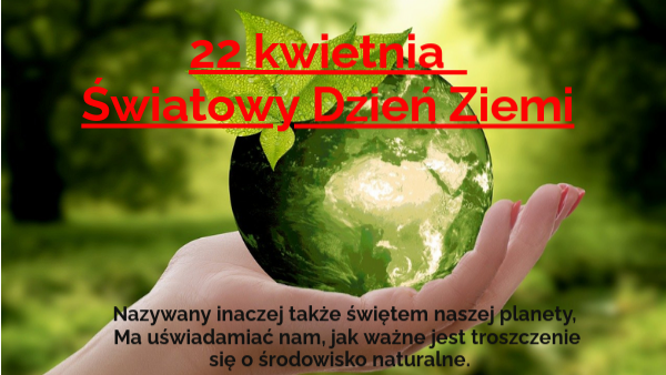 Nazywany inaczej także świętem naszej planety, Ma uświadamiać nam, jak ważne jest troszczenie się o środowisko naturalne.