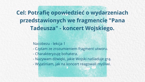 Cel: Potrafię opowiedzieć o wydarzeniach przedstawionych we fragmencie "Pana Tadeusza" - koncert Wojskiego.