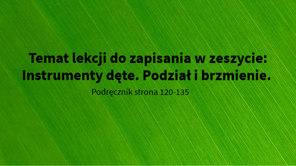 Temat lekcji do zapisania w zeszycie: Instrumenty dęte. Podział i brzmienie.