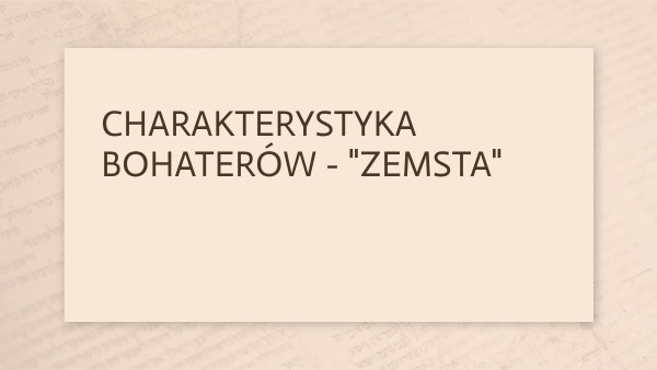 CHARAKTERYSTYKA BOHATERÓW - "ZEMSTA"