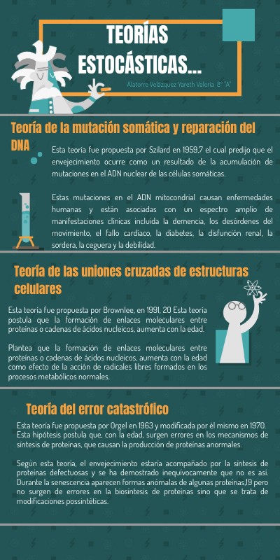 Esta teoría fue propuesta por Szilard en 1959,7 el cual predijo que el envejecimiento ocurre como un resultado de la acumulación de mutaciones en el ADN nuclear de las células somáticas. Estas mutaciones en el ADN mitocondrial causan enfermedades humanas y están asociadas con un espectro amplio de manifestaciones clínicas incluida la demencia, los desórdenes del movimiento, el fallo cardíaco, la diabetes, la disfunción renal, la sordera, la ceguera y la debilidad.