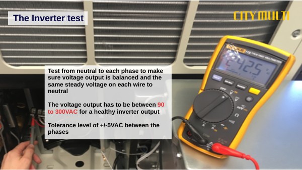 Test from neutral to each phase to make sure voltage output is balanced and the same steady voltage on each wire to neutral The voltage output has to be between 90 to 300VAC for a healthy inverter output Tolerance level of +/-5VAC between the phases