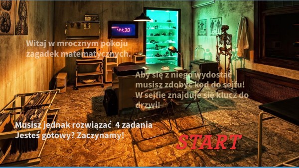 Aby się z niego wydostać musisz zdobyć kod do sejfu! W sejfie znajduje się klucz do drzwi!