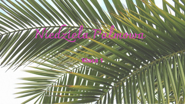 Wydarzenie uroczystego wjazdu Jezusa do Jerozolimy obchodzimy w ostatnią niedzielę Wielkiego Postu - w Niedzielę Palmową. Rozpoczyna ona Wielki Tydzień. Wielki, bo wspominamy w nim bardzo ważne wydarzenia: śmierć Pana Jezusa i Jego zmartwychwstanie, to znaczy wstanie z grobu. W Niedzielę Palmową przychodzimy do kościoła z palmami, które kapłan poświęca. Palmy przypominają nam radosne powitanie Jezusa, a także Jego zwycięstwo nad śmiercią - zmartwychwstanie. A tu co nieco o palmach: