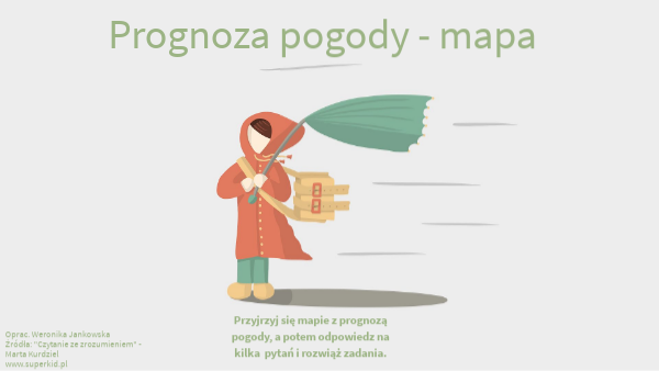 Przyjrzyj się mapie z prognozą pogody, a potem odpowiedz na kilka pytań i rozwiąż zadania.